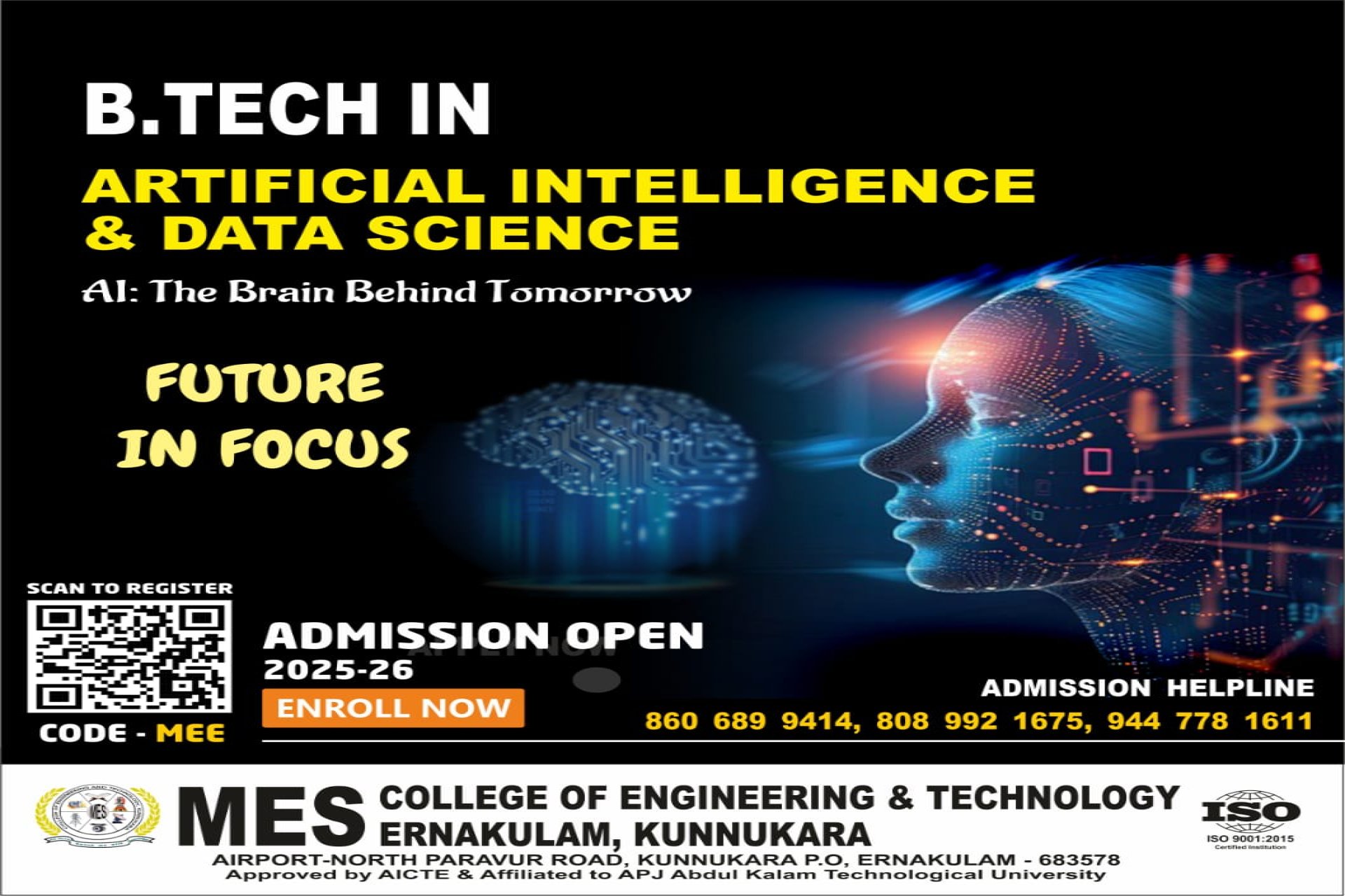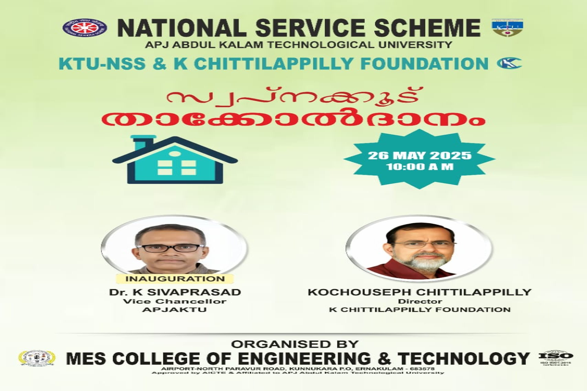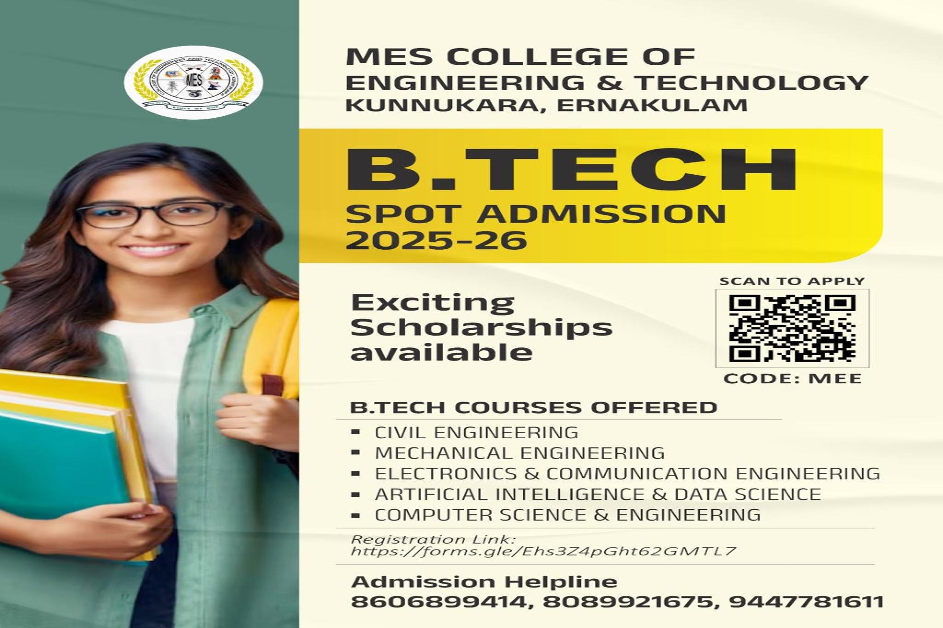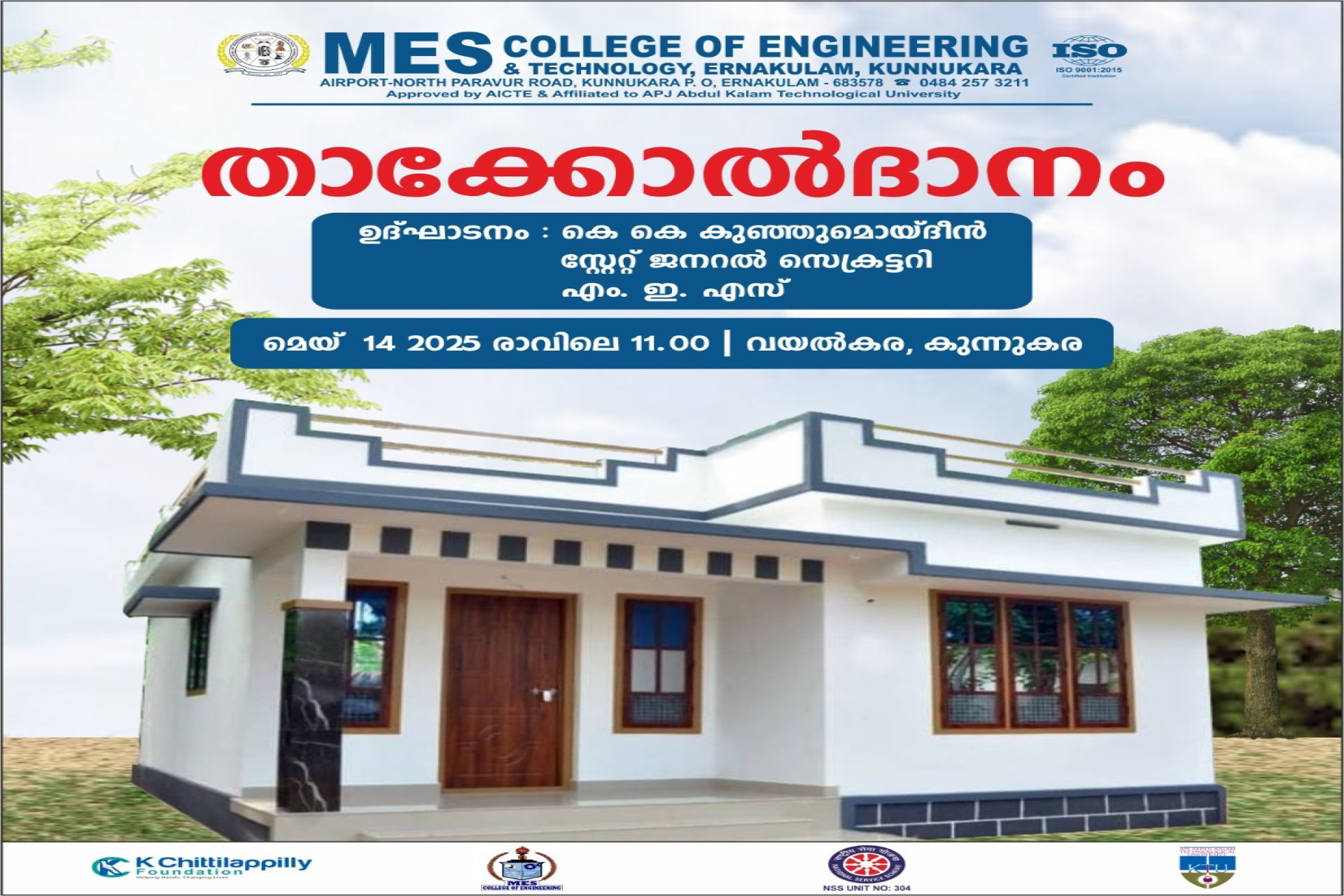 MES College of Engineering And Technology was established in the year 2011 by Muslim Educational Society(Regd). The college is situated on the banks of Periyar river in Kunnukara, North Paravur.The college is approved by AICTE and Govt. of Kerala is affiliated to APJ Abdul Kalam Technological University,Trivandrum.