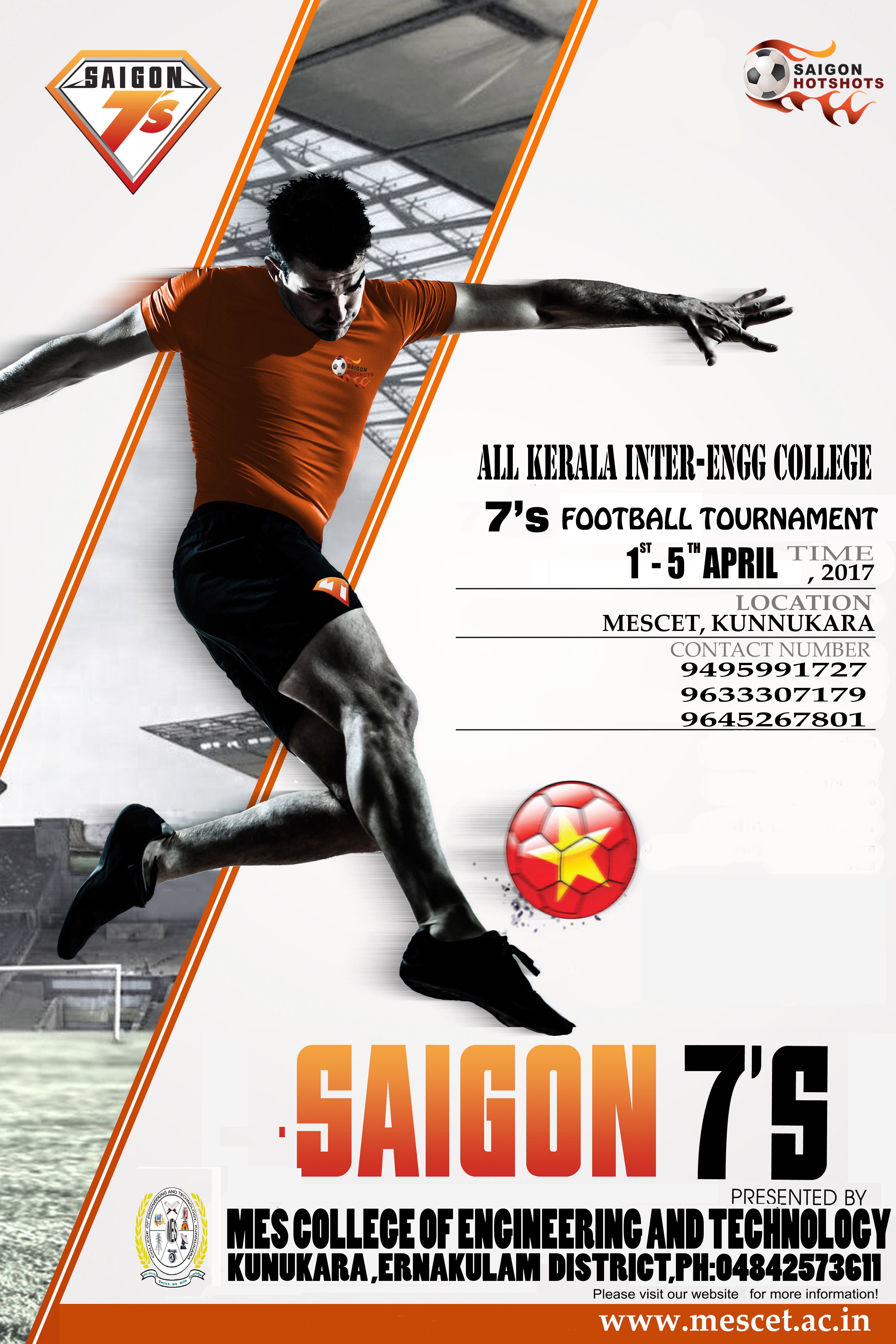 All Kerala Inter-Engineering College 7's Football Tournament "SAIGON 7'S" on 01-04-2017 to 05-04-2017 at MES Engineering College, Kunnukara.