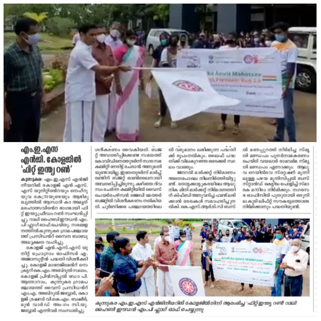 Our college is having one regular funded unit of NSS under Technical cell for M.G University students, having an yearly intake of 50 active volunteers .We also have two units of NSS (224,583) under the Technical cell with a yearly strength of 120 volunteers for A P J Abdul Kalam Technological University students. The NSS unit of our college places an active role in molding the students to better humane and responsible citizens. As a part of NSS activities there is a seven day special camping programme in an adopted village and it provides unique opportunities to the students for group living, collective experience sharing, sharing responsibilities, addressing various developmental issues of a community.